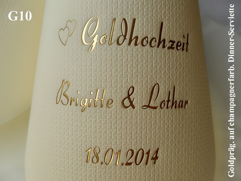 mit Ihren Namen, demDatum Ihrer Jubiäumsfeier undGoldhochzeits-Motiv(z. B. G16)