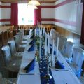 mit Tischdekoration von