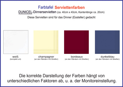 DUNICEL-Servietten zeichnen sich durch eine glatte Oberfläche und ihr hohes Flächengewicht aus. DUNICEL-Servietten sind aus einer Art Papier, heben sich aber von anderen Servietten, die aus Papier hergestellt werden, ab. Sie sind daher eine echte Alternative zu Stoffservietten.