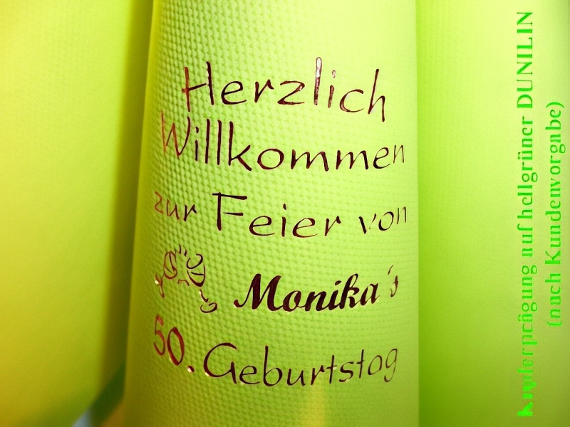 Durch unsere individuellen Prägungen geben Sie Ihrer Geburtstagsdekoration zudem eine persönliche Note und haben gleichzeitig ein bleibendes Andenken an Ihren Ehrentag !