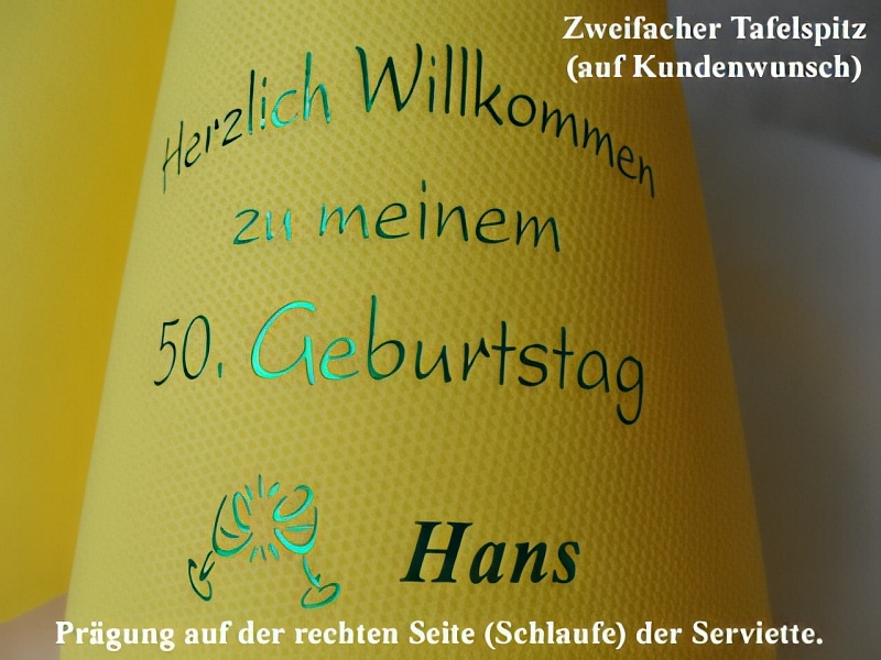 platzieren wir die Prägung so, daß die Servietten zum 3fachen Tafelspitz (Der Königin der Tafelspitze!) aufgestellt werden können