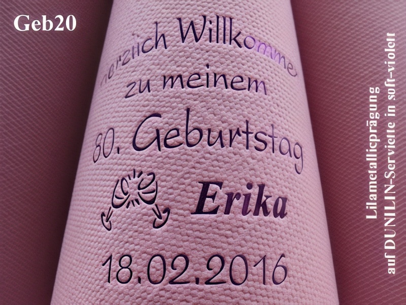 Für einen unvergesslichen Geburtstag bieten wir personalisierte Servietten, durch hochwertigen Druck oder Prägung mit Ihrem Design, Namen und Datum veredelt.