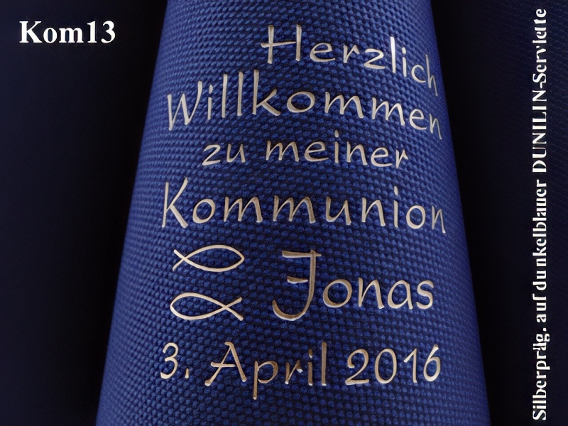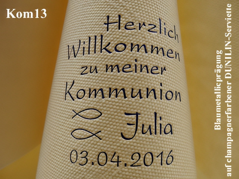 mit Namen des Kommunionkindes, demDatum der Kommunion undKommunion-Motiv(z. B. Kom13)