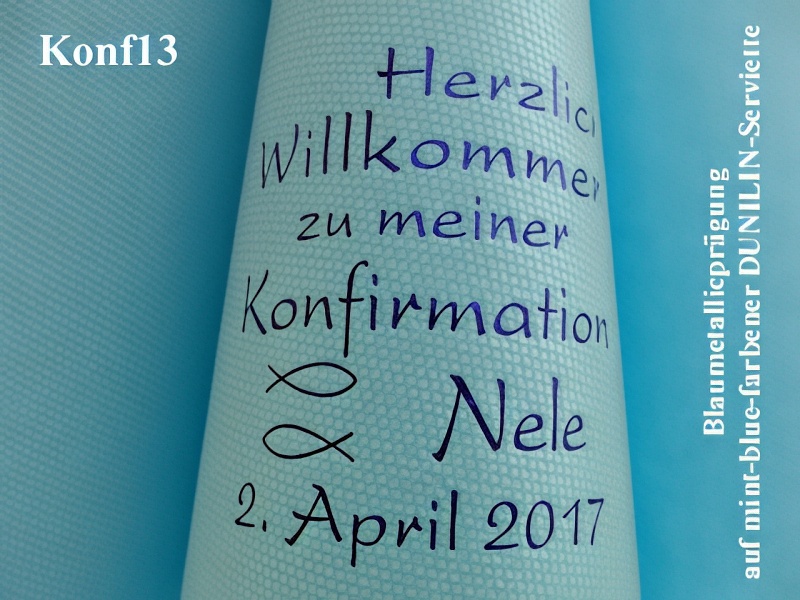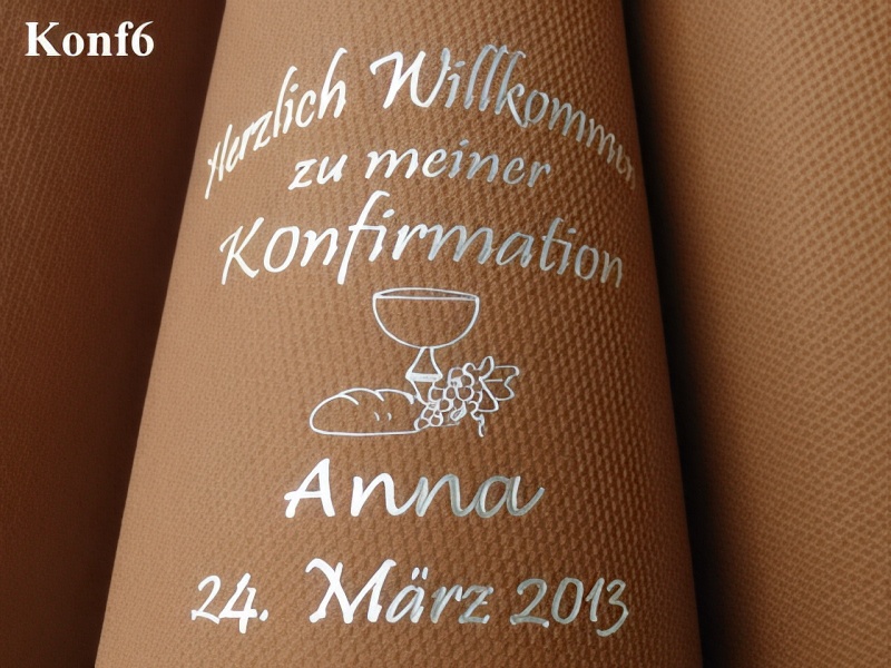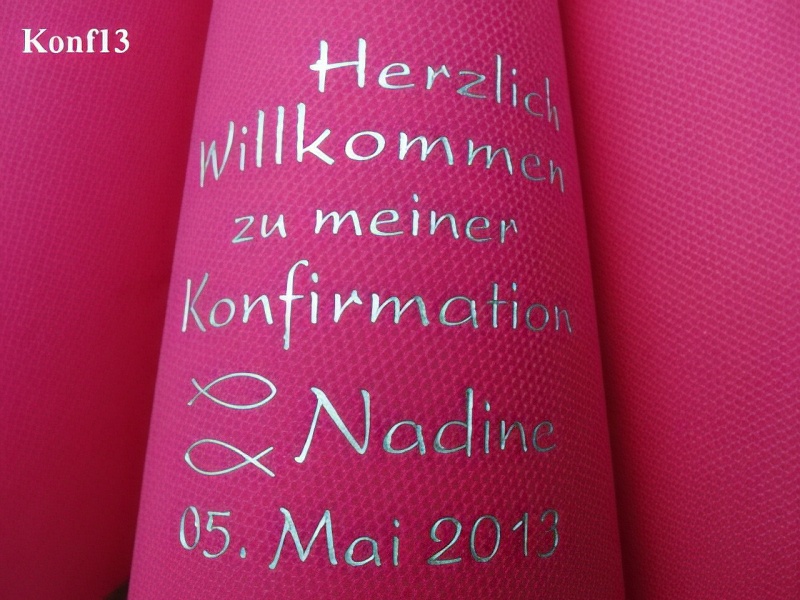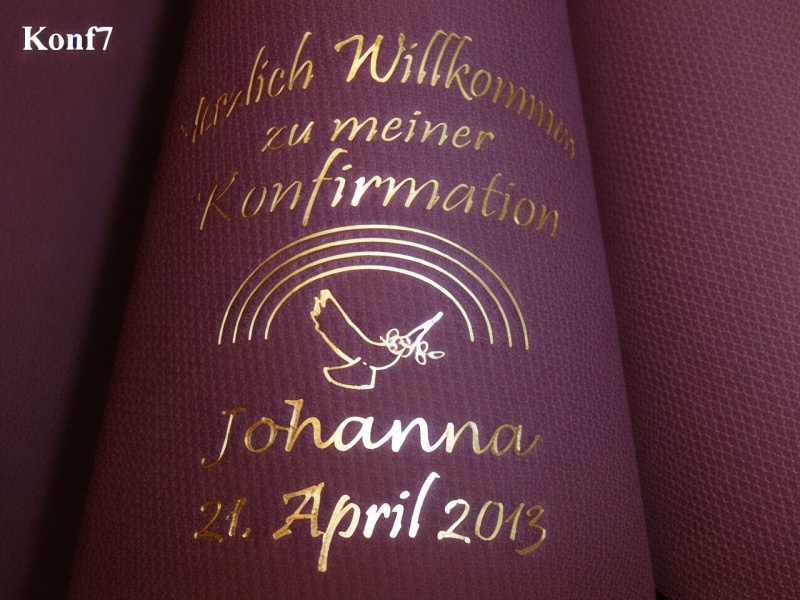 mit Namen des Konfirmanden, demDatum der Konfirmation undMotiv(z. B. Konf13)
