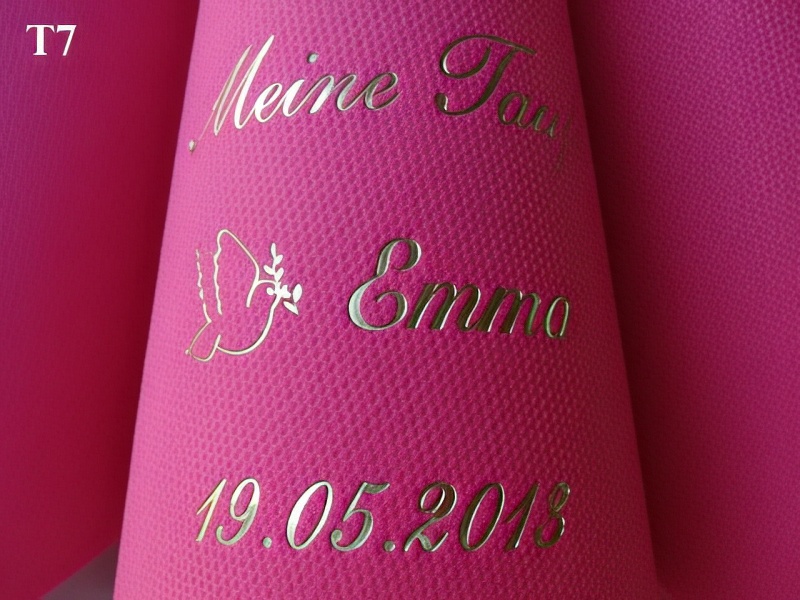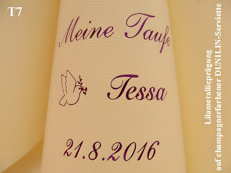 mit Namen des Täuflings, demTaufdatum undTauf-Motiv(z. B. T14)