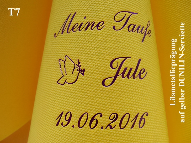 unilin-Dinner-Servietten gelb, bedruckt mit Lilametallicprägung und Tauf-Motiv: T7 (Taube)Dunilin-Dinner-Servietten beige (champagner), bedruckt mit Lilametallicprägung und Tauf-Motiv: T7(Fische)Dunilin-Dinner-Servietten soft violett bedruckt mit Lilametallicprägung und Taufmotiv: T17 (Storch, Zylinder)230-DunilinMintBlueBlauT7 KopieDunilin-Dinner-Servietten fuchsia, bedruckt mit Goldprägung und Tauf-Motiv: T7 (Taube)Motive Taufe– Seite 1Motive Taufe– Seite 2Motive Taufe– Seite 3
