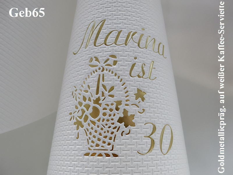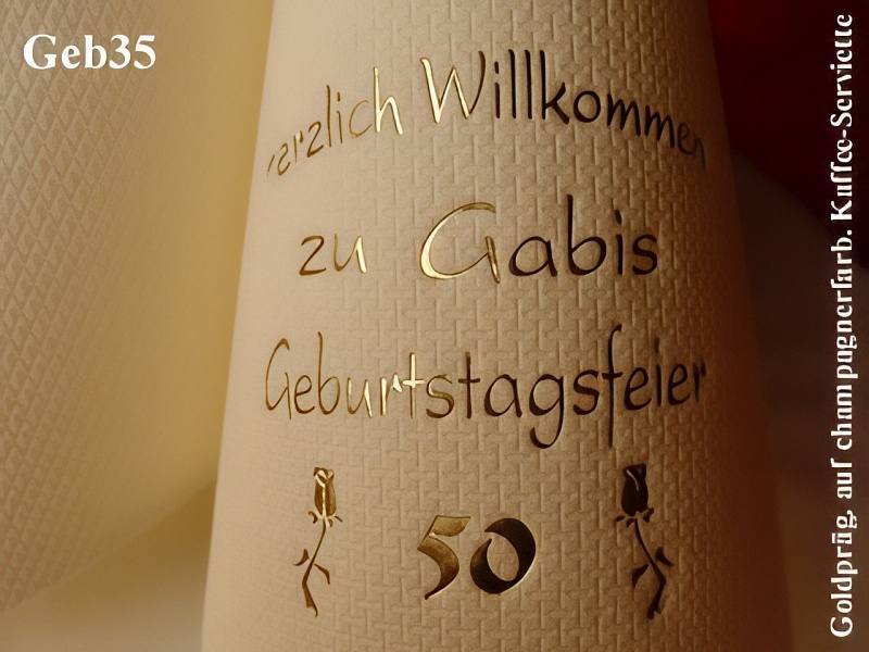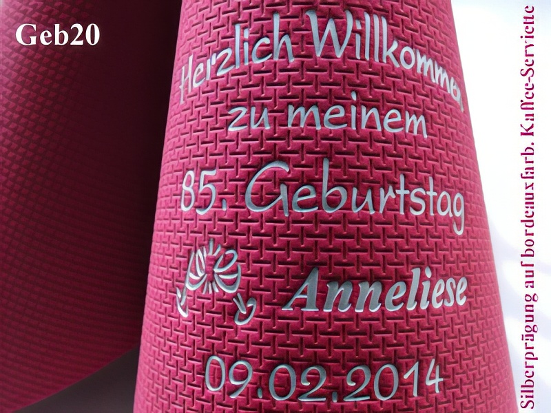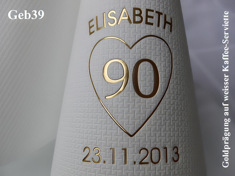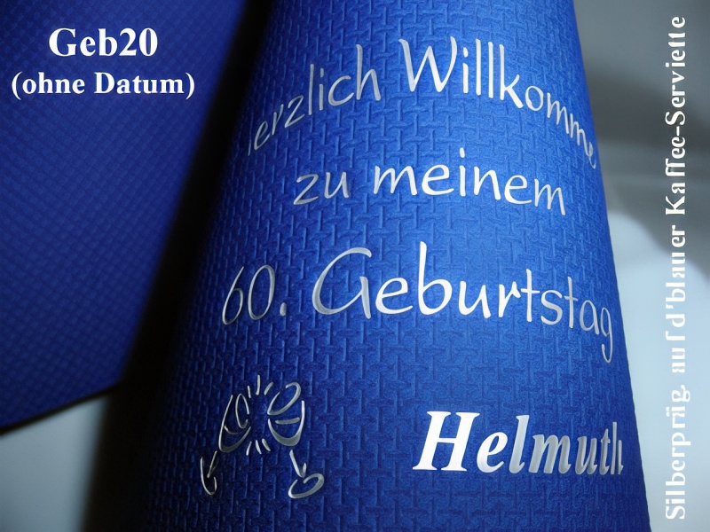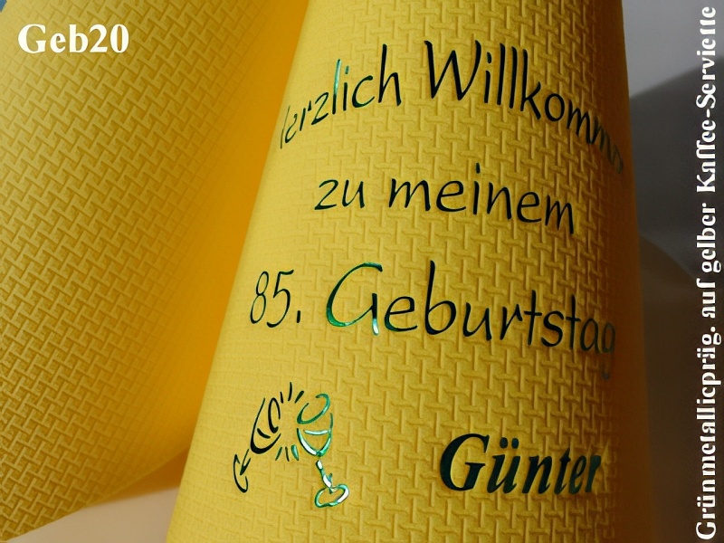 Eleg.-Premium-Geburtstagsservietten edel (bedruckt) handgeprägt mit Ihrem Namen, Ihrem Motiv (zB. Geb20) und dem Datum Ihres Feiertages und evtl. je nach Motiv auch x-ter Geburtstag (z. B. 1., 2., 3. … Geburtstag)