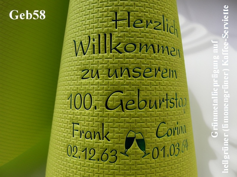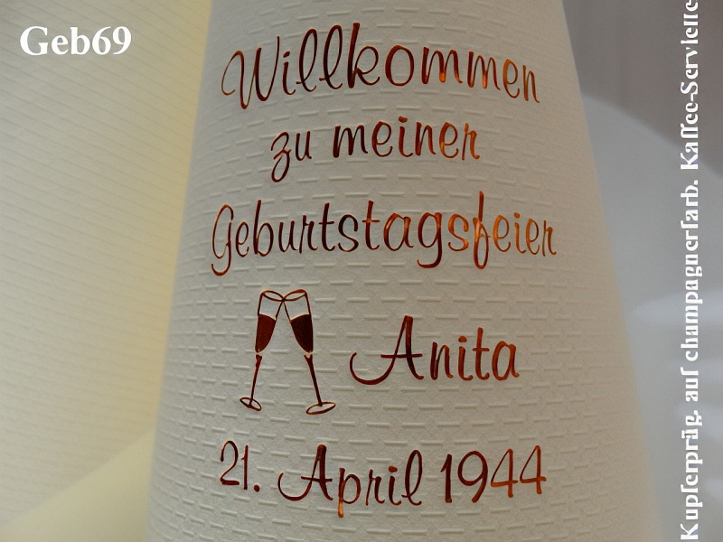 Durch unsere individuellen Prägungen geben Sie Ihrer Tischdekoration zudem eine persönliche Note und haben gleichzeitig ein bleibendes Andenken an Ihre Geburtstagsfeier !