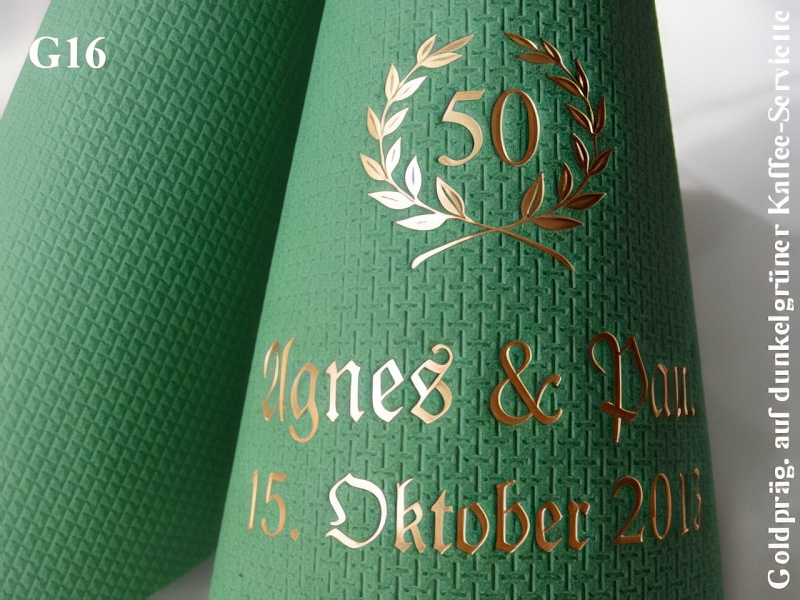 Eleg.-Kaffee-Servietten dunkelgrün, bedruckt mit Goldprägung und Goldhochzeits-Motiv: G6 (Jubiläumspaar)005-Eleg.-Kaffee-Servietten_WeissGoldG8Eleg.-Kaffee-Servietten dunkelgrün, bedruckt mit Goldprägung und Goldhochzeits-Motiv: G6 (Jubiläumspaar)Eleg.-Kaffee-Servietten weiß, bedruckt mit Goldprägung und Goldhochzeits-Motiv: G8 (Doppelherzen)Eleg.-Kaffee-Servietten champagner, bedruckt mit Goldprägung und Goldhochzeits-Motiv: G9 (Rosenblüte)Eleg.-Kaffee-Servietten dunkelgrün, bedruckt mit Goldprägung und Goldhochzeits-Motiv: G16 (Jubiläumskranz)Eleg.-Kaffee-Servietten bordeaux, bedruckt mit Goldprägung und Goldhochzeits-Motiv: G12+ (Rosenblüte)Eleg.-Kaffee-Servietten champagner, bedruckt mit Goldprägung und Goldhochzeits-Motiv: G7 (Herzen)