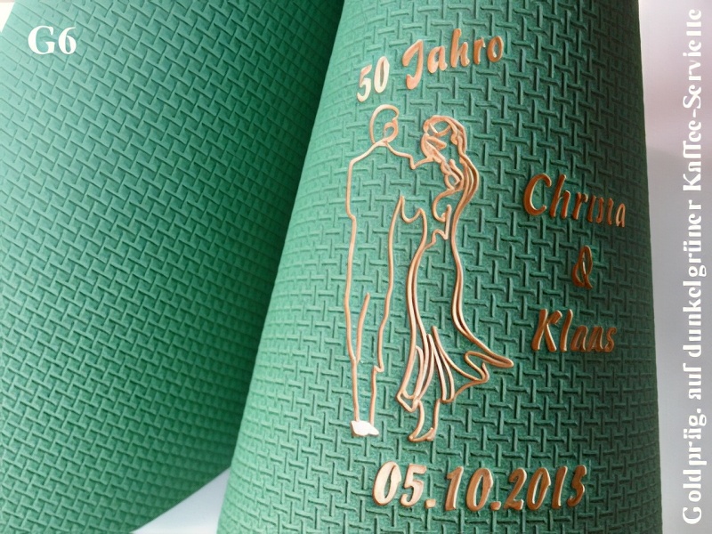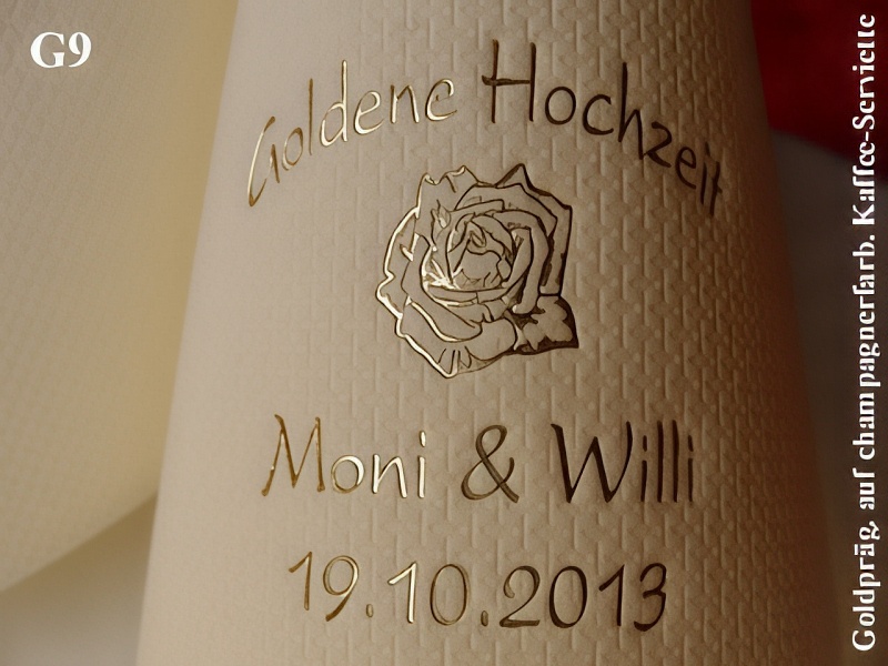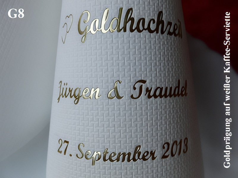 Durch unsere individuellen Prägungen geben Sie Ihrer Tischdekoration zudem eine persönliche Note und haben gleichzeitig ein bleibendes Andenken an Ihre Goldene Hochzeit !