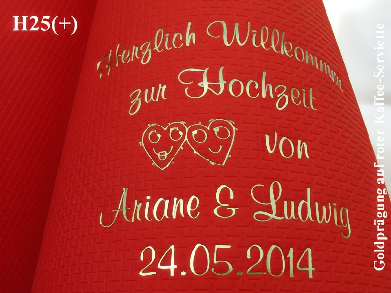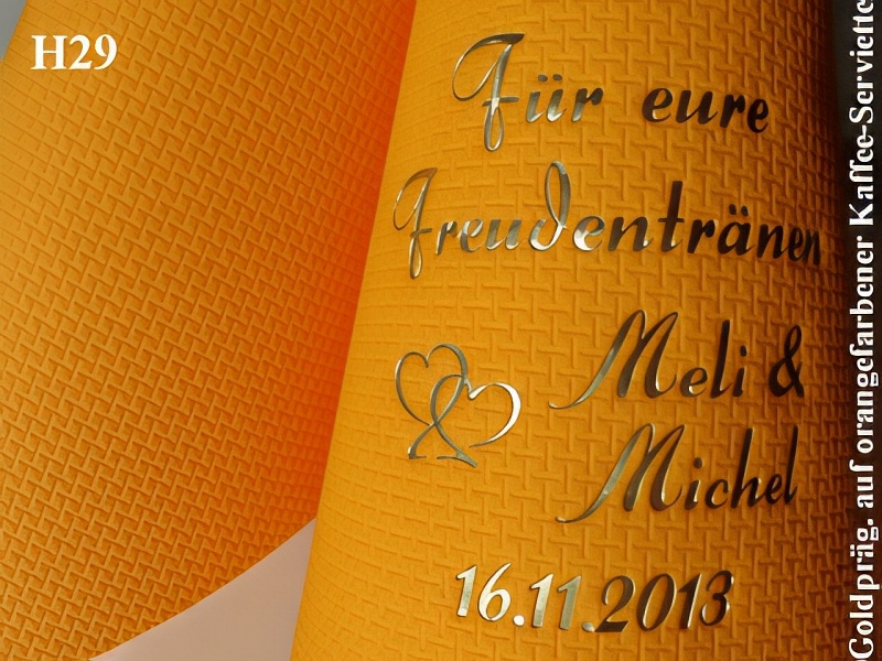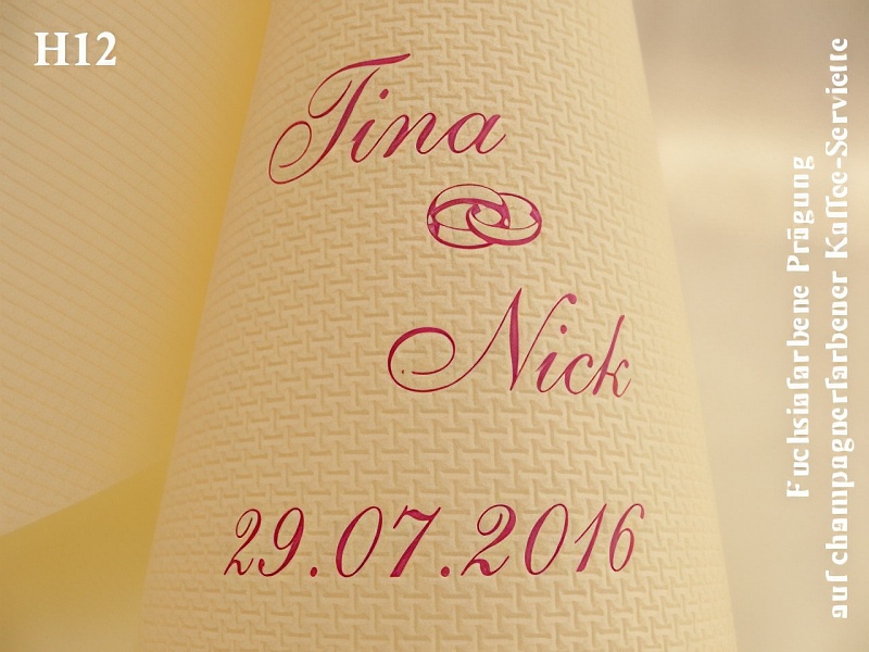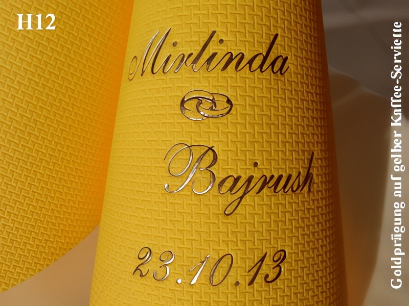Eleg.-Kaffee-Servietten rot, bedruckt mit Goldprägung und Hochzeits-Motiv: H25+ (Doppelherzen)Eleg.-Kaffee-Servietten champagner, bedruckt mit Grünmetallicprägung und Hochzeits-Motiv: H27 (Eheringe)Eleg.-Kaffee-Servietten gelb, bedruckt mit Goldprägung und Hochzeits-Motiv: H12 (Eheringe)Eleg.-Kaffee-Servietten orange, bedruckt mit Goldprägung und Hochzeits-Motiv: H14 (Hochzeitsauto)Eleg.-Kaffee-Servietten rot, bedruckt mit Goldprägung und Hochzeits-Motiv: H2 (Just married)Eleg.-Kaffee-Servietten champagner, bedruckt mit Kupferprägung und Hochzeits-Motiv: H28+ (Brautpaar im Herz)Eleg.-Kaffee-Servietten gelb, bedruckt mit schwarzer Prägung und Hochzeits-Motiv: H5 (Doppelherzen)Eleg.-Kaffee-Servietten gelb, bedruckt mit Bordeauxrotmetallicprägung und Hochzeits-Motiv: H27 (Eheringe)Eleg.-Kaffee-Servietten rot, bedruckt mit weißer Prägung und Hochzeits-Motiv: H28+ (Brautpaar im Herz)Eleg.-Kaffee-Servietten champagner, bedruckt mit Goldprägung und Hochzeits-Motiv: H18 (Brautpaar im Wagen)Eleg.-Kaffee-Servietten weiß, bedruckt mit Goldprägung und Hochzeits-Motiv: H20+ (Doppelherzen)Eleg.-Kaffee-Servietten hellgrün, bedruckt mit schwarzer Prägung und Hochzeits-Motiv: H35 (Doppelherzen)Eleg.-Kaffee-Servietten rot, bedruckt mit Silberprägung und Hochzeits-Motiv: H20+ (Herzsymbol)Eleg.-Kaffee-Servietten orange, bedruckt mit schwarzer Prägung und Hochzeits-Motiv: H26 (Doppelherzen)Eleg.-Kaffee-Servietten champagner, bedruckt mit fuchsiafarbener Prägung und Hochzeits-Motiv: H12 (Eheringe)Eleg.-Kaffee-Servietten rot, bedruckt mit Silberprägung und Hochzeits-Motiv: H1 (Rosenblüte)Eleg.-Kaffee-Servietten weiß, bedruckt mit Silberprägung und Hochzeits-Motiv: H14 (Just married)Eleg.-Kaffee-Servietten orange, bedruckt mit Goldprägung und Hochzeits-Motiv: H29 (Freudentränen)Eleg.-Kaffee-Servietten champagner, bedruckt mit Goldprägung und Hochzeits-Motiv: H5 (Doppelherzen)Eleg.-Kaffee-Servietten lila, bedruckt mit Silberprägung und Hochzeits-Motiv: H36 (Sektkelche)Eleg.-Kaffee-Servietten weiß, bedruckt mit Silberprägung und Hochzeits-Motiv: H28+ (Brautpaar im Herz)Eleg.-Kaffee-Servietten orange, bedruckt mit Blaumetallicprägung und Hochzeits-Motiv: H18 (Just Married)Eleg.-Kaffee-Servietten weiß, bedruckt mit Bordeauxrotmetallicprägung und Hochzeits-Motiv: H38+ (Braut-/Tanzpaar)