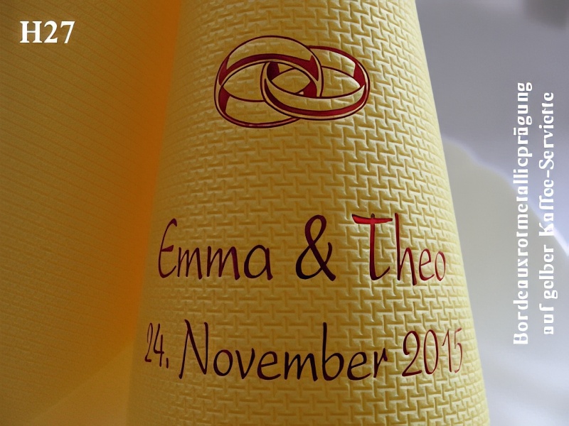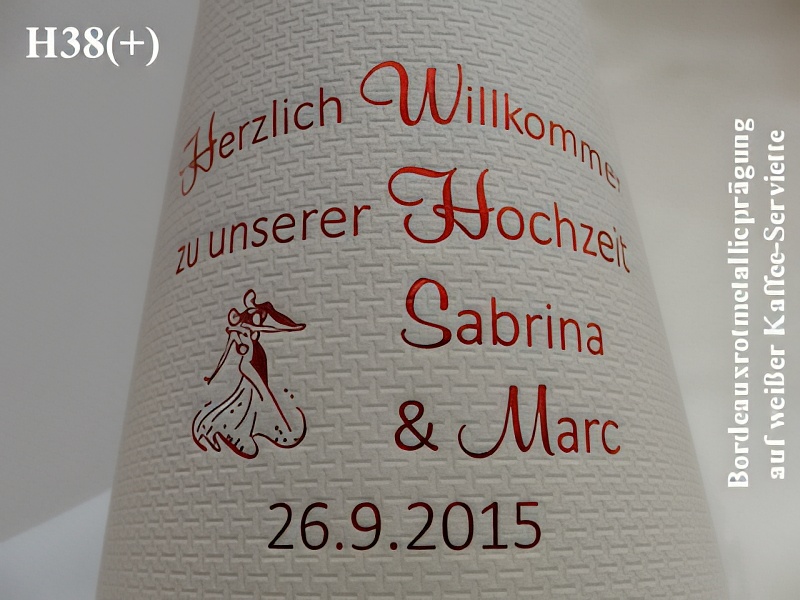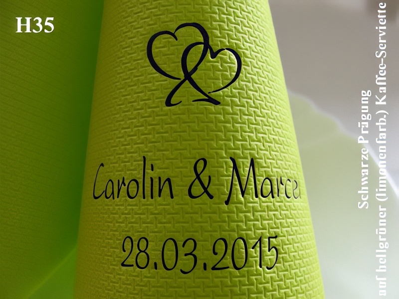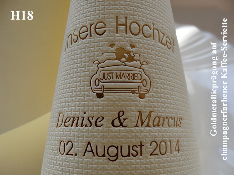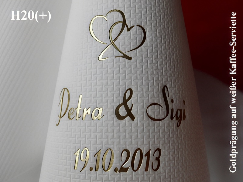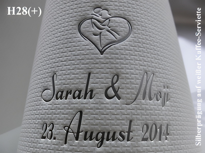 Durch unsere individuellen Prägungen geben Sie Ihrer Tischdekoration/Hochzeitsdeko zudem eine persönliche Note und haben gleichzeitig ein bleibendes Andenken an Ihren Hochzeitstag !
