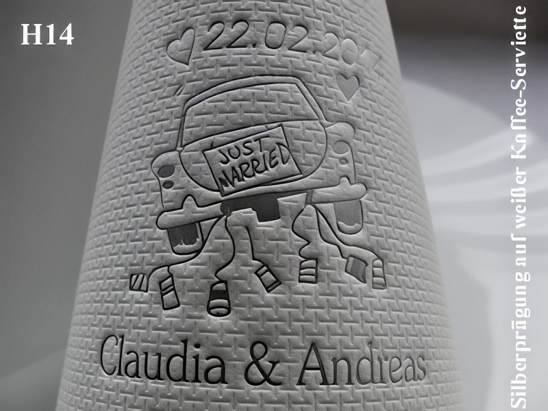 mit IhrenNamen, demDatum IhrerHochzeit undMotiv(z. B. H39) wunderschön handgeprägt !