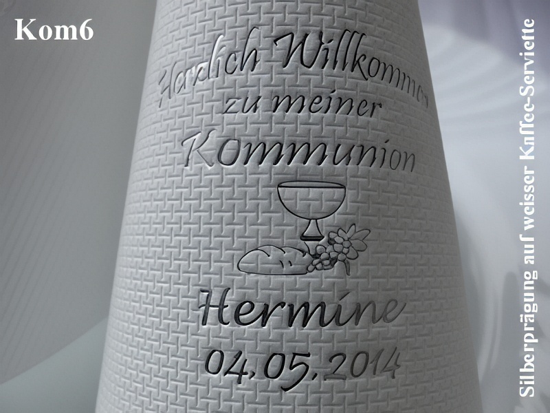 Durch unsere individuellen Prägungen geben Sie Ihrer Tischwäsche zudem eine persönliche Note und haben gleichzeitig ein bleibendes Andenken an die 1. hl. Kommunion Ihres Kindes !
